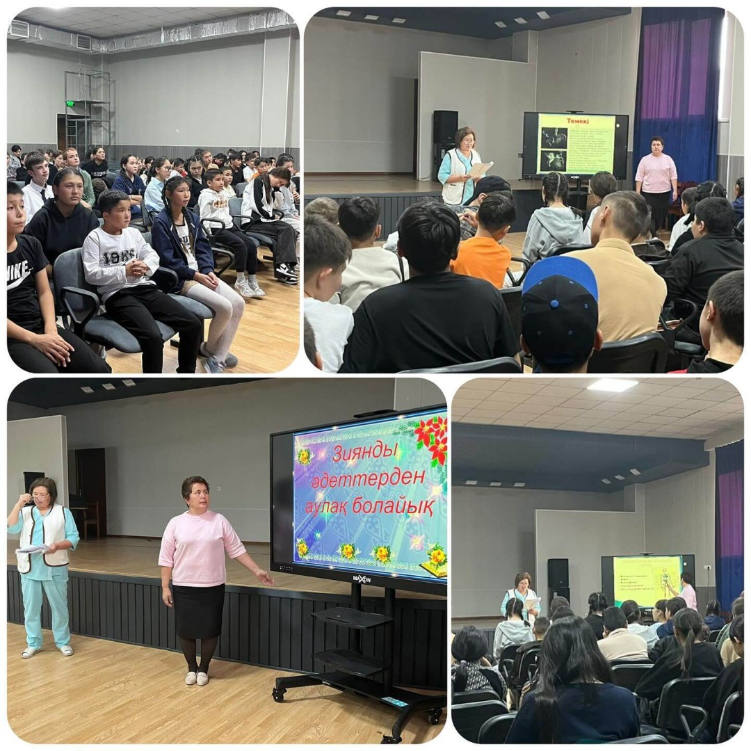 Мектебімізде медбике мен психолог мамандарының қатысуымен оқушыларға «Зиянды әдеттерден аулақ болайық» тақырыбында түсіндіру жұмысы жүргізілді.